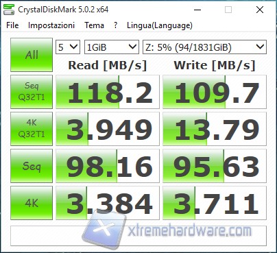 In RAID 1 questi numeri son leggermente più bassi ma sembra nell’ordine dei 96-110MB/s.